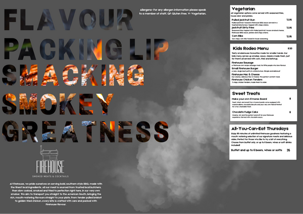 *Thursday is our special 'All You Can Eat' deal where you can enjoy 90 minutes of endless in-house smoked meats and sides plus up to 6 drinks for just £35pp!