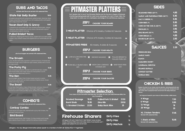 The Firehouse is the only BBQ restaurant in Glasgow that actually rubs, smokes and BBQ's our meats in-house daily. We pride ourselves on sourcing local meats and ingredients, applying our unique methods and layering the flavours to bring you some flavour packing lip smacking smoky greatness!
